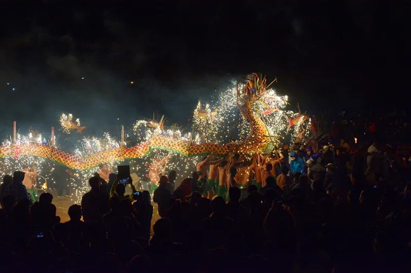 埔寨火龍是我們的春節(jié)傳統(tǒng)活動(dòng),據(jù)說至今三百年歷史了。“火龍”由鐵絲、竹料、紙等扎成,繪上鱗、角、爪,龍首至龍尾長達(dá)數(shù)十米。在龍身上安裝煙花、炮竹、火箭多達(dá)數(shù)千枚,龍頭、龍尾裝的火藥更數(shù)不勝數(shù)。一條火龍由三四十個(gè)赤膊青年手擎,加上鼓樂手、龍蝦、金魚等人,整個(gè)隊(duì)伍達(dá)200多人。
