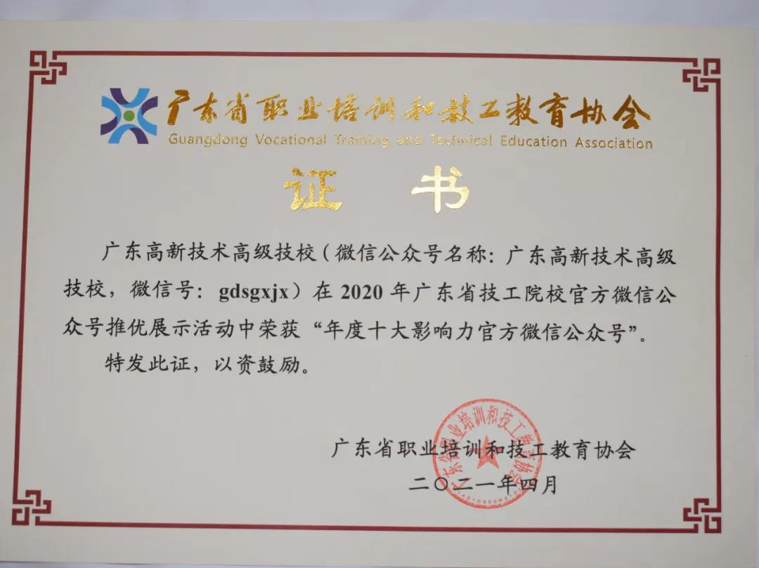 2021-04-27【喜報】高新技校公號又雙叒獲獎啦!三屆蟬聯(lián)“年度十大影響力官微★廣東省高新技術(shù)高級技工學(xué)校官方微信(微信號:gdgxjx)被評為“年度十大影響力官方微信公眾號”...