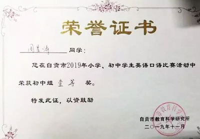 川貢衡川,我校學(xué)子喜獲自貢市初中生英語口語比賽一等獎(jiǎng)