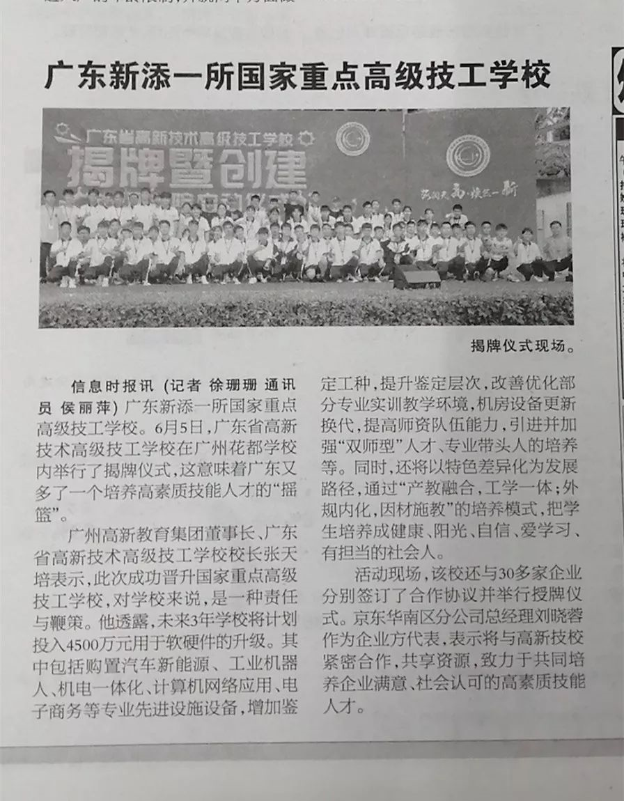 昨天 6月5日,廣東省高新技術(shù)高級(jí)技工學(xué)校舉行升高揭牌儀式(戳這里,精彩回顧),廣東省人社廳領(lǐng)導(dǎo)、評(píng)估專家、兄弟院校、校企代表及高新技校近千名師生共同參與、共同見(jiàn)證了廣東省又一所培養(yǎng)高素質(zhì)技能人才的“搖籃”的誕生。