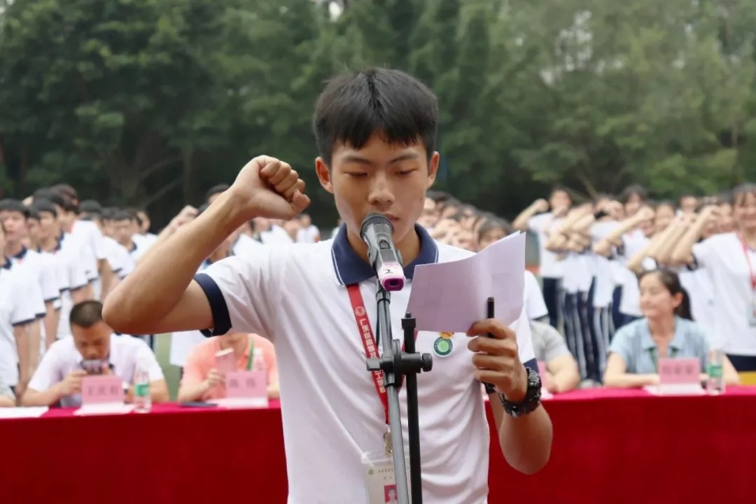 振奮人心的音樂回蕩在足球場上,同學(xué)們斗志昂揚地唱著團(tuán)歌。