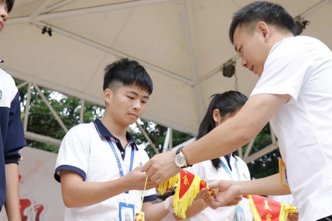 ▲教務(wù)科科長(zhǎng)助理張紅波與優(yōu)秀學(xué)子合影