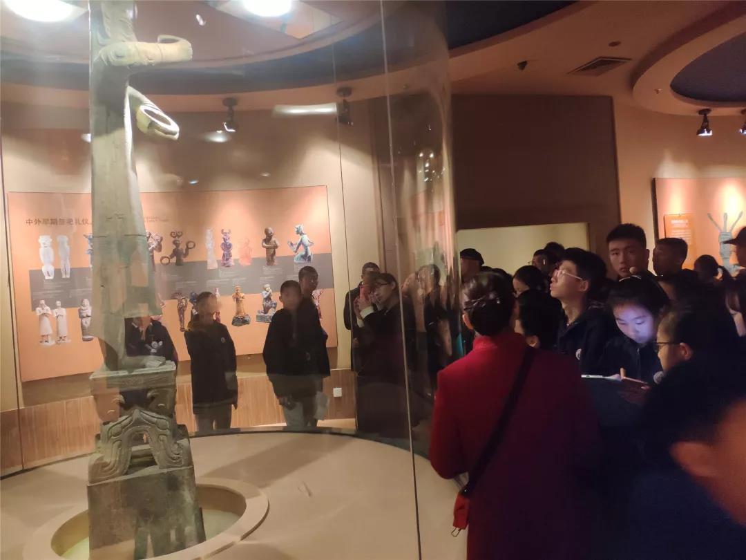 在解說員的講解下,同學們積極提問、認真聆聽、仔細記錄。一件件珍貴文物展現(xiàn)在同學們眼前,讓人無不贊嘆古蜀人民勤勞智慧,尤其是在沒有發(fā)達的機械情況下,僅憑雙手打磨的玉石器物和那鎮(zhèn)館之寶青銅神樹!連隨行的老師都說,“連我也想研究研究古蜀文明啦!”