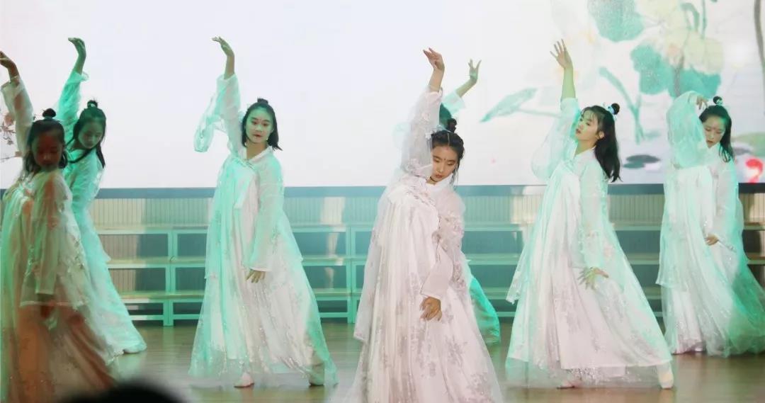 “飄然轉(zhuǎn)旋回雪輕,嫣然縱送游龍?bào)@。”中國(guó)舞班的孩子舞姿輕盈,廣袖輕曳,時(shí)而飄飄若流風(fēng)雪回,時(shí)而疾速如游龍受驚。