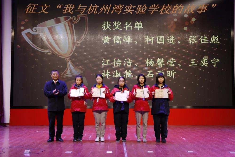 會(huì)上,還表彰了“我與杭州灣實(shí)驗(yàn)學(xué)校的故事”征文獲獎(jiǎng)人員,師生共敘校園情,同臺(tái)受獎(jiǎng)?wù)坡書Q。