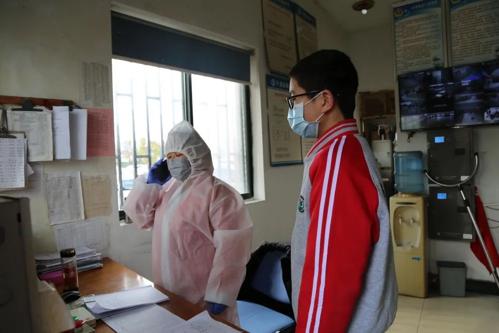 第二位學生周同學通過紅外線測溫儀顯示體溫37.8,值班老師孟斌健馬上把他攔住并安慰學生稍微等待一下,并當場把他交給負責引領的趙璐群老師。趙老師馬上向班主任和學校分管領導匯報情況。