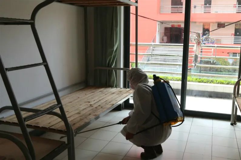 事后,學校消毒人員對學生剛剛經過的途徑和場所進行仔細徹底消毒。