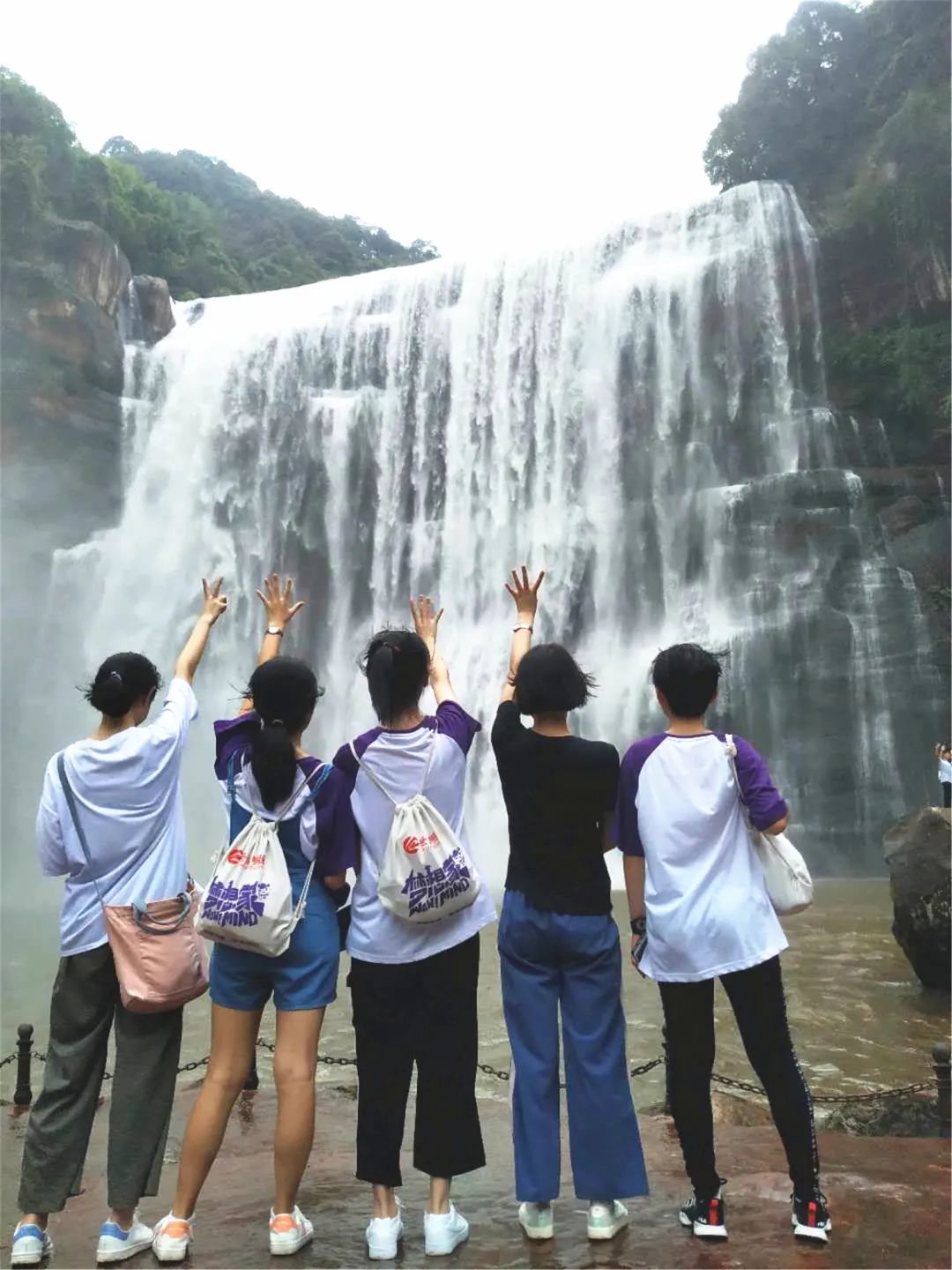 在赤水大瀑布下,我們經(jīng)受了大自然的洗禮,面對面交流,實(shí)是“風(fēng)景這邊獨(dú)好”……