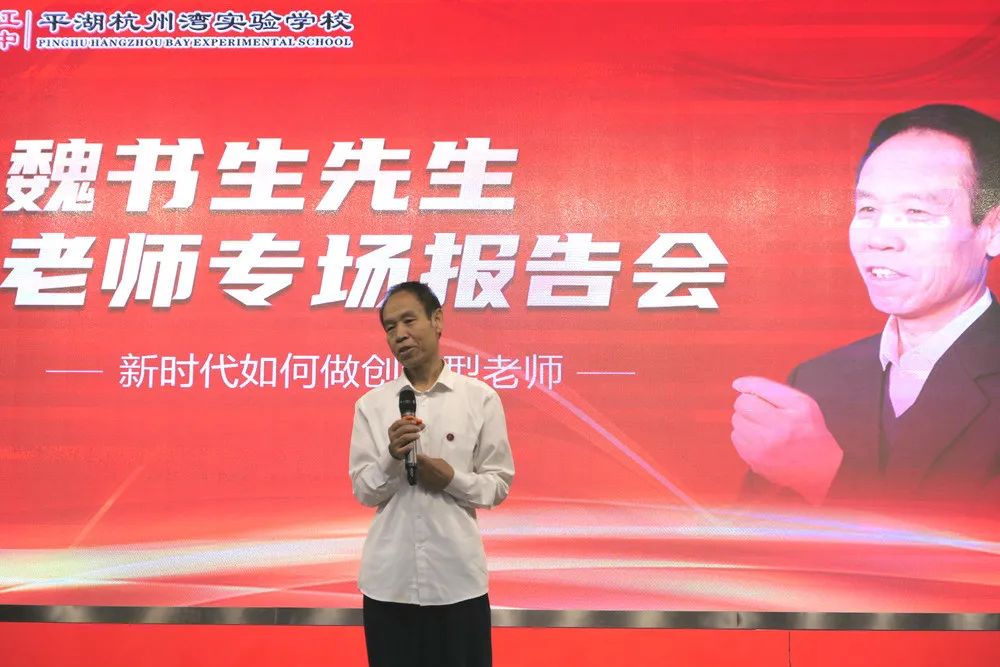 2020年9月15日上午,被喻為“穿西裝的孔子”的當(dāng)代教育家魏書生來我校為全體教職工進(jìn)行以“新時代如何做創(chuàng)新型老師”為主題的專場思想報(bào)告會。嘉興教育學(xué)院處長沈俊松先生,嘉興港區(qū)社發(fā)局文教衛(wèi)副書記顧巧明先生,平湖實(shí)驗(yàn)小學(xué)教育集團(tuán)黨委書記、總校長芮金良先生,乍浦高級中學(xué)黨總支書記、校長曹躍平先生,平湖實(shí)驗(yàn)小學(xué)教育集團(tuán)副總校長、毓秀小學(xué)校長湯麗英女士,平湖杭州灣實(shí)驗(yàn)學(xué)校理事長肖家興博士,北大親子教育專家孫一鳴老師,海寧市南苑中學(xué)、嘉興市城南中學(xué)、嘉興市運(yùn)河實(shí)驗(yàn)學(xué)校、嘉興市城南小學(xué)等學(xué)校,以及平湖市、港區(qū)兄弟學(xué)校的老師們紛紛慕名而來,聆聽長者教誨。