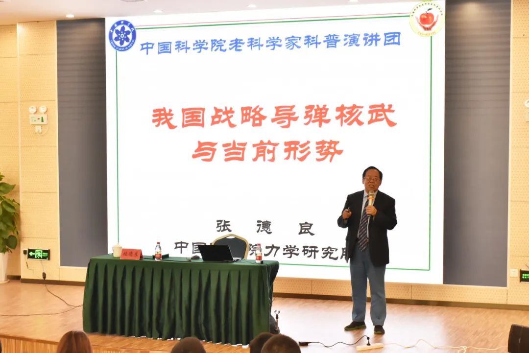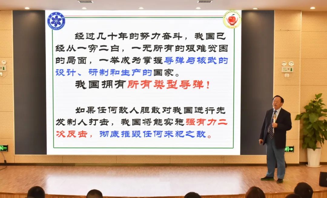 張德良教授通過大量視頻和圖片資料,介紹了我國的國防建設(shè)和武器裝備,展示了我國當(dāng)前的主要戰(zhàn)略導(dǎo)彈核武實力與成果;介紹了我國從新中國建立之初艱難貧困局面到逐漸成為掌握導(dǎo)彈與核武的設(shè)計、研制和生產(chǎn)國家的發(fā)展歷程以及“中國導(dǎo)彈之父”錢學(xué)森為中國航天航空事業(yè)所做出的巨大貢獻(xiàn)。