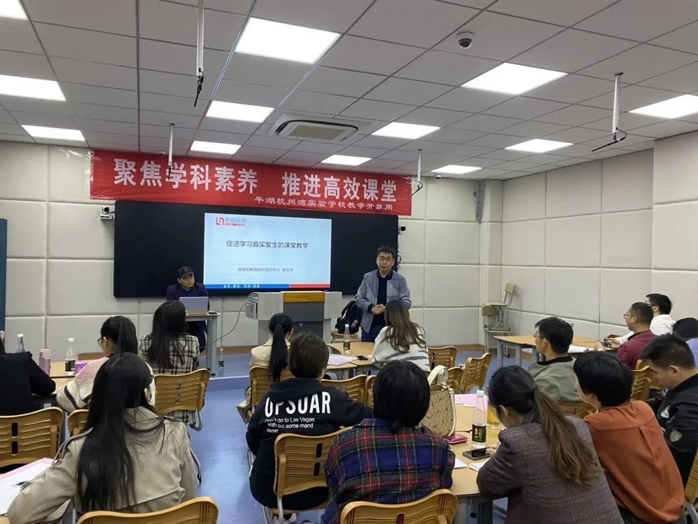中午,我們有幸請到嘉興市學(xué)科帶頭人、嘉興市南湖區(qū)教研員朱文平專家為我們做了題為《促進(jìn)學(xué)習(xí)真實(shí)發(fā)生的課堂教學(xué)》微型報告。朱老師給我們指出,教學(xué)改革的核心是“改變教與學(xué)的關(guān)系”。“教是為了不教,教為了學(xué);少教多學(xué),變教為學(xué)”是教學(xué)改革的方向,我們應(yīng)當(dāng)基于學(xué)科特征、學(xué)習(xí)內(nèi)容特征、學(xué)生學(xué)習(xí)特征選擇合適的學(xué)教方式,使學(xué)習(xí)方式多元化,從而學(xué)習(xí)行為多樣化,學(xué)生才能夠更好地獲得知識。