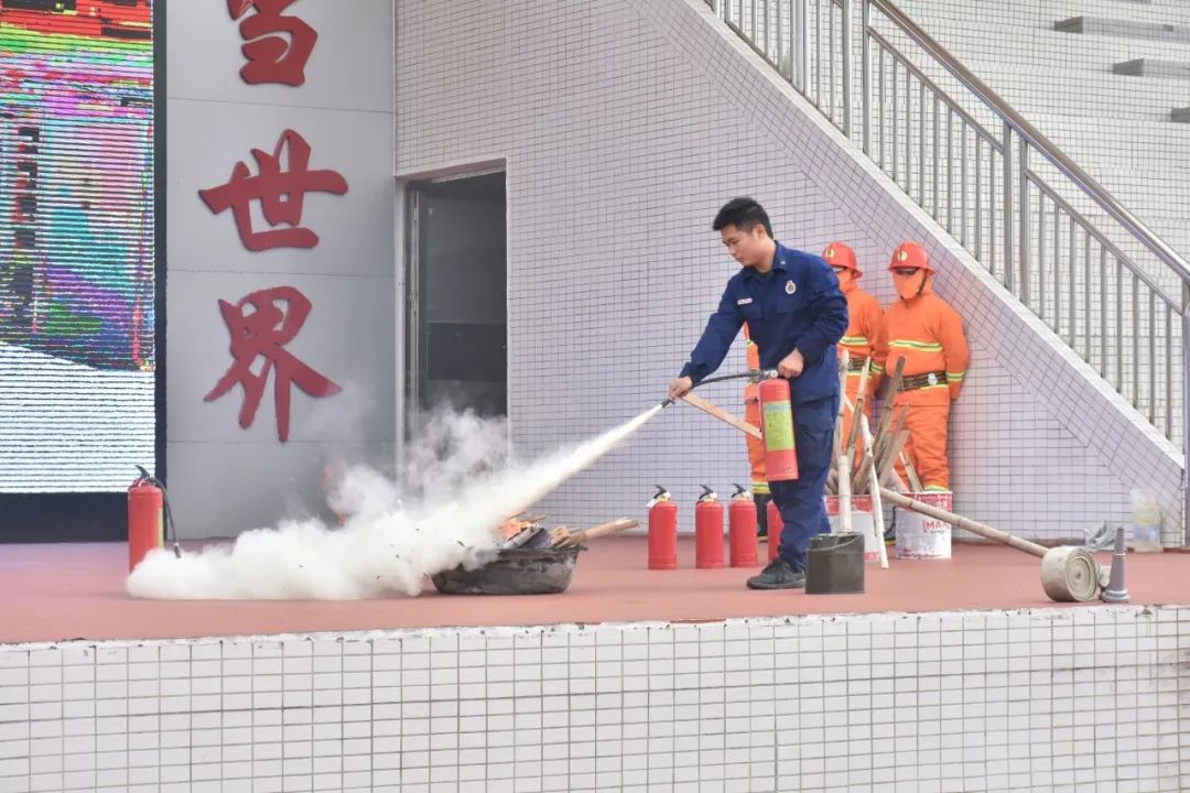 理論知識(shí)過(guò)關(guān),接下來(lái)消防志愿者團(tuán)隊(duì)就開(kāi)始實(shí)際演練滅火器的使用。