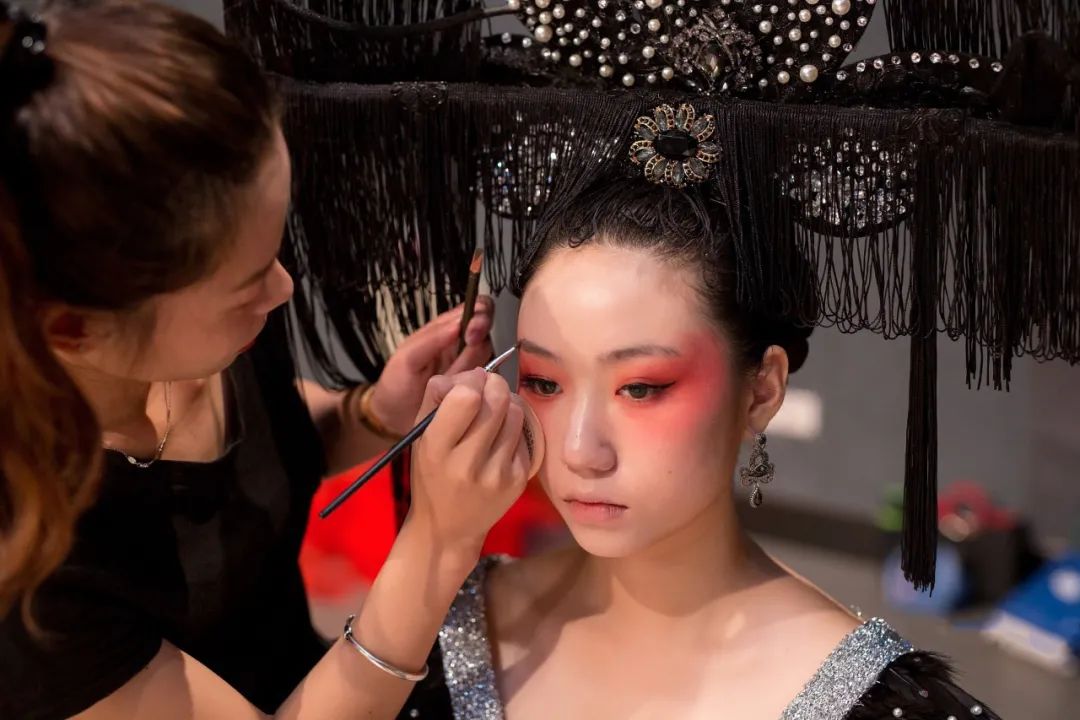 “本屆的形象設(shè)計(jì)作品都是同學(xué)們的原創(chuàng)。我們所說(shuō)的形象設(shè)計(jì)主要是指人物形象設(shè)計(jì),它涵蓋了多方面比如妝面、發(fā)型、服飾、美甲甚至一些彩繪,是對(duì)人物整體形象的設(shè)計(jì),突出人物的精神面貌和氣質(zhì)。”