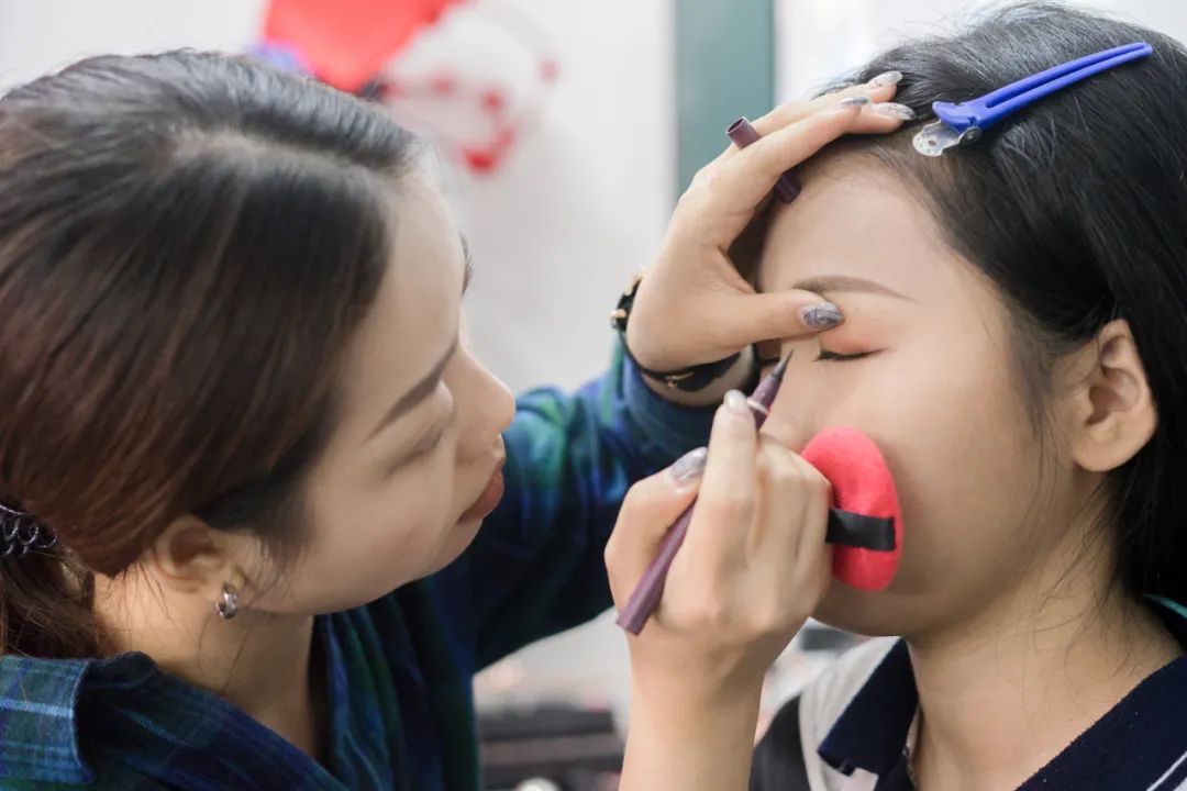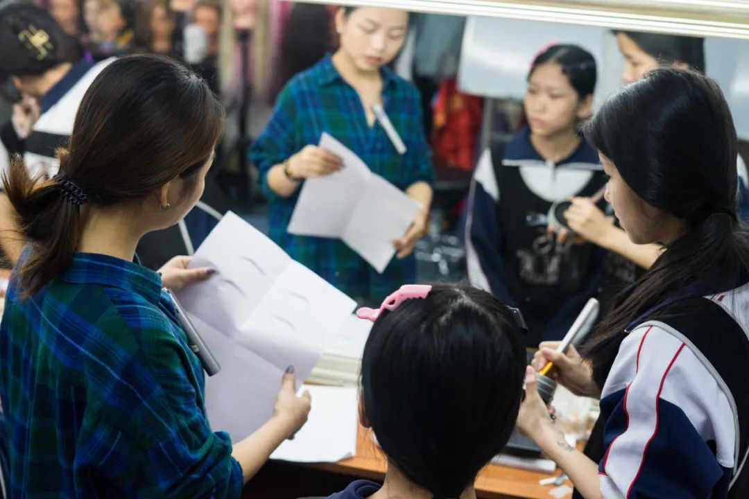 “本學(xué)期19級(jí)的化妝與造型實(shí)訓(xùn)由我授課,根據(jù)不同的應(yīng)用場(chǎng)合,我們會(huì)學(xué)習(xí)到晚宴妝、主持人妝、新娘妝,職場(chǎng)妝,還有一些特殊妝容如影視劇里面的老人妝、話劇活動(dòng)里面的創(chuàng)意妝等等,以及對(duì)應(yīng)的造型設(shè)計(jì)。”