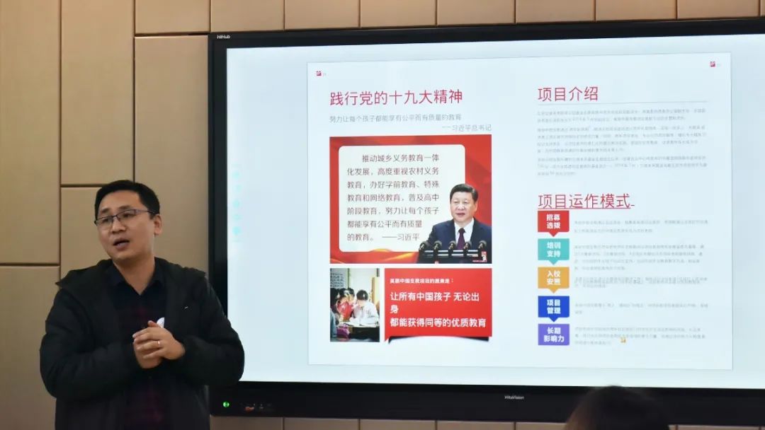 廖杞南理事長從招募選拔、培訓(xùn)支持、入校安置、項目管理、長期影響力等方面介紹項目的運作模式,從線下培訓(xùn)交流活動、線上培訓(xùn)資源庫交流平臺、個性化發(fā)展資源分別介紹項目老師們的培訓(xùn),從三個維度、五個階段、五種方式講解項目老師的發(fā)展藍圖,結(jié)合項目影響力、課堂影響力、社區(qū)影響力、往屆校友去向以及合作伙伴等層面的概述使我校領(lǐng)導(dǎo)們更加了解美麗中國項目的培養(yǎng)模式。美麗中國將全國各地優(yōu)秀人才匯聚到最艱難的地方,向大眾昭示著這樣的培訓(xùn)對于非師范專業(yè)老師也是一條道路,同時也深刻感受到這所“另類”師范的獨特魅力。
