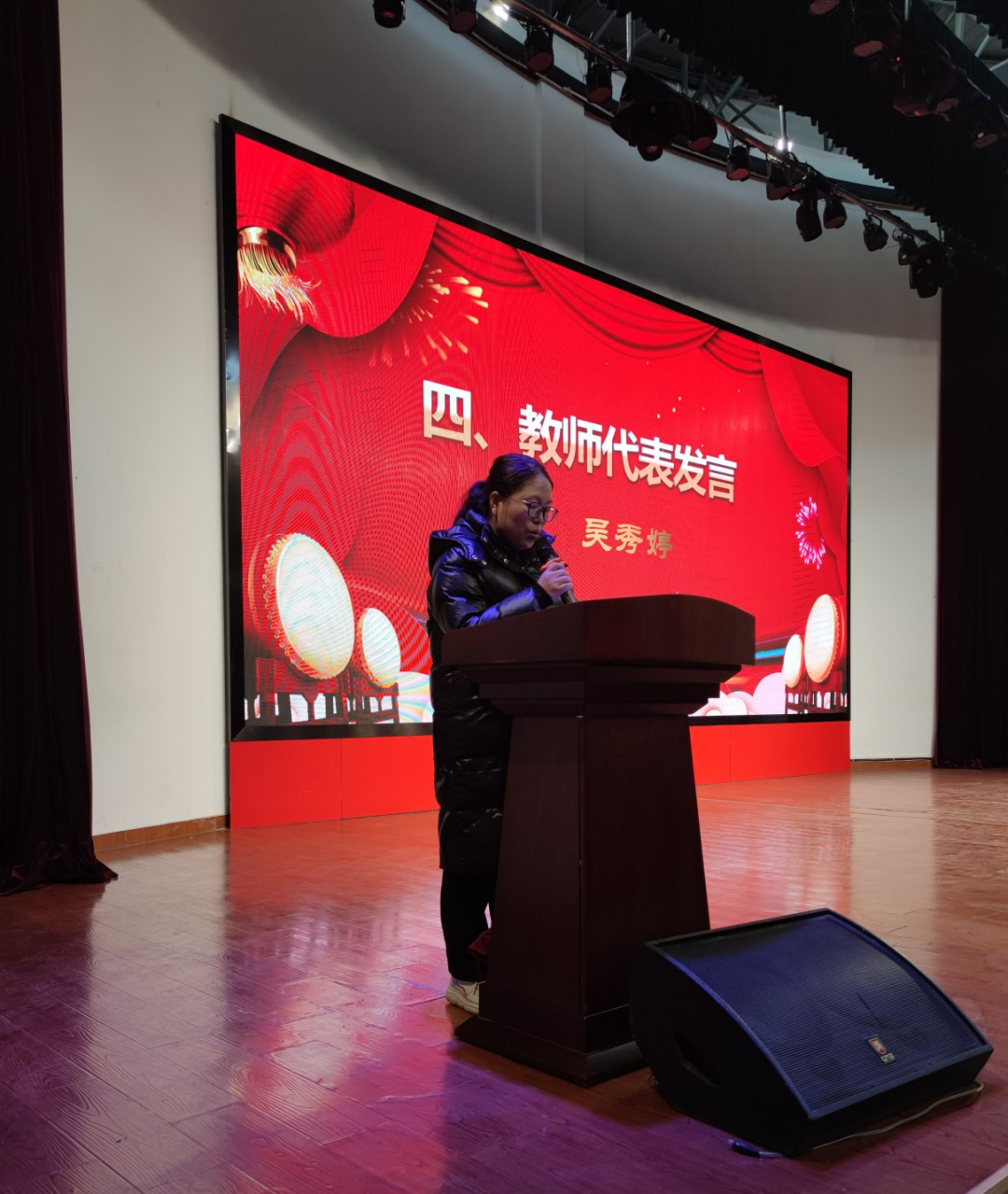 隨后,教師代表吳秀婷老師進(jìn)行了發(fā)言,新學(xué)期,全體教師將繼續(xù)秉持“先有父母心,再做教書人”的理念,鉆研教學(xué)方法,讓每一位學(xué)生在課堂上都有收獲。