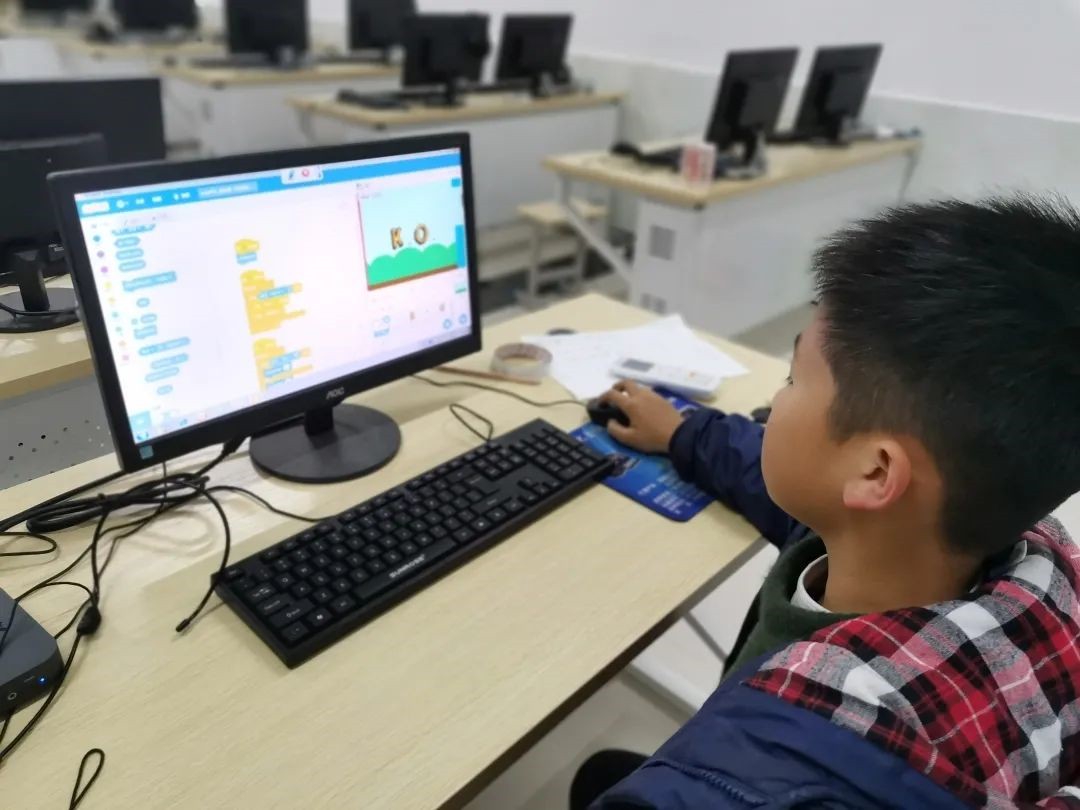 為了更好地提升學(xué)生的信息素養(yǎng),我校開(kāi)設(shè)少兒編程大課堂,孩子們通過(guò)項(xiàng)目式開(kāi)展和小組合作的方式,使用圖形化編程語(yǔ)言Scratch創(chuàng)作,理解順序、并行、重復(fù)結(jié)構(gòu)、偵測(cè)條件等計(jì)算思維中的重要基礎(chǔ)概念和算法知識(shí),既鍛煉了邏輯思維能力和創(chuàng)新能力,也增強(qiáng)了其不斷試錯(cuò)和解決問(wèn)題的能力。